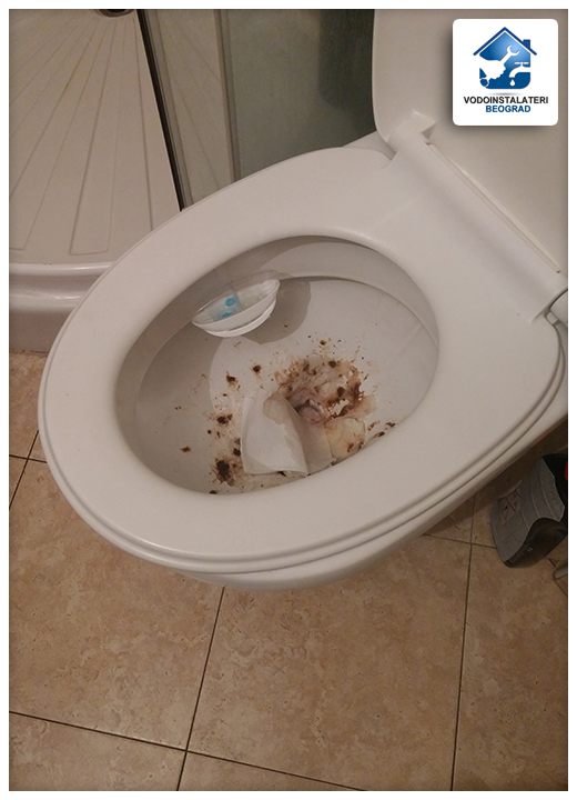 Najbitnije je da ne paničite i da nas pozovete, budite prisebni. Dok mi budemo dolazili, pokušajte da peškirima, ćebadima i sličnim tkaninama zagradite wc šolju kako fekalije ne bi napredovale dalje. Zatim pozovite komšije iznad Vas i reci im da ne koriste tu vertikalu na kojoj je prikačena Vaša wc šolja.